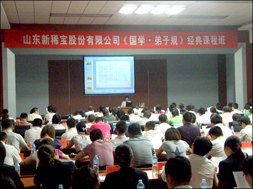 這次培訓,公司邀請了濟南市傳統文化研究會常務理事、山東中醫藥大學醫古文教研室任禮信老師為大家講授《弟子規》任老師的授課生動有趣、別開生面,他用通俗易懂的語言,結合現代典型事例,對《弟子規》全文進行了深入淺出的詳細講解,并號召大家要繼承、學習和發揚我國的傳統文化,營造尊老愛幼、鄰里和諧的家庭環境和愛崗敬業、團結向上的工作氛圍。會議室里不時傳來整齊的誦讀聲,大家在聽取解讀的同時,還認真記錄學習筆記,整個培訓現場呈現出學國學、學中華傳統文化的濃郁氛圍。