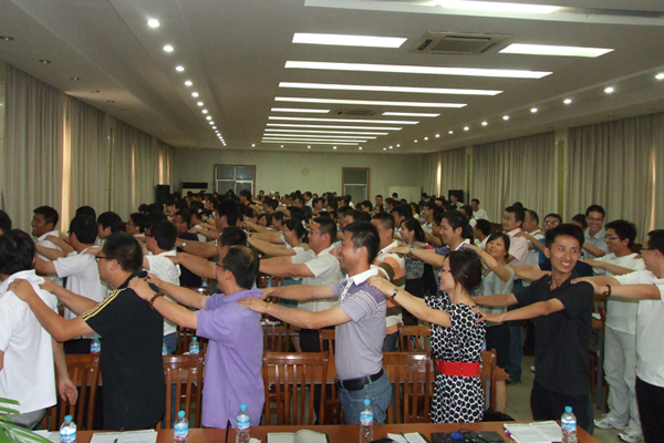 在培訓(xùn)的最后,姜偉老師帶領(lǐng)大家?guī)ё哌^(guò)了一段心靈之旅,讓我們很好地審視了自己的過(guò)去,思考了自己的現(xiàn)狀,感懷了一路走來(lái)的人生。為了達(dá)到更好的效果,會(huì)場(chǎng)關(guān)閉了全部燈光,隨之耳邊傳來(lái)舒緩輕柔的音樂(lè),然后姜偉老師用充滿磁性的聲音聲情并茂地向大家講述我們前進(jìn)路上所遇到的“貴人”:給予我們生命的父母、傳授給我們知識(shí)的老師、為我們提供發(fā)展平臺(tái)和機(jī)遇的老板、給我們幫助和支持的同事……他生動(dòng)的講述讓在場(chǎng)的很多人都流下了真誠(chéng)感動(dòng)的淚水!不僅僅是因?yàn)楦袆?dòng),而是很多人想起了自己的父母、家人,想起了自己做銷售一路走下來(lái)的艱辛和磨難!在日復(fù)一日、年復(fù)一年的重復(fù)工作中,大家的激情消失怡盡,但是面對(duì)我們頭發(fā)花白、老眼昏花的父母,面對(duì)他們充滿期待的眼神,再大的困難、再多的挫折,又能算得了什么呢?的確,很多時(shí)候,我們不僅僅為自己活著,而是為了父母兄弟、為了孩子、為了心中的信念而活著!做銷售難,做一名出色的銷售更是難上加難!拜訪難,簽單更難!達(dá)成目標(biāo)難,超越目標(biāo)更難!保持好心態(tài)難,一直保持著好心態(tài)更難。所以,回想起這段坎坷路,我們每個(gè)人的心里都有酸甜苦辣,但是,我們都在堅(jiān)持,為什么?不正是為了實(shí)現(xiàn)心中的夢(mèng)想嗎?可遇到困難的時(shí)候,碰到挫折的時(shí)候,我們是否還一直堅(jiān)守著心中的夢(mèng)想和責(zé)任?在分享環(huán)節(jié)中,有兩位同仁流著眼淚說(shuō):父母面朝黃土背朝天累死累活地干一年,可能并不能賺上多少錢(qián),特別是家在農(nóng)村的,趕上好年頭莊稼收成會(huì)好些,要是趕上壞年景,可能這一年就白干了!老父老母真的挺不容易的,如果我們能好好工作,可能會(huì)讓父母的生活過(guò)得好一點(diǎn),為了我們頭發(fā)花白、含辛茹苦把我們辛苦拉扯大的父母,我們沒(méi)有什么理由不努力!是啊,我們很多同仁都出身于平凡的家庭,我們可能更懂得生活的艱辛,更能體諒到父母的不容易。為了父母,我們一定要微笑著面對(duì)生活的坎坷,為了父母,我們一定要好好工作!