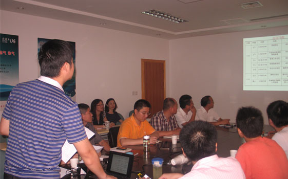 2011年7月12日8:30分,公司在402會議室召開了銷售部上半年經營分析會議,回顧了上半年市場銷售工作,總結經驗,查找問題,分析原因,部署下半年工作,此次會議由東南大區經理陶青松先生主持,副總經理杜征國先生、副總經理鄭朝霞女士、銷售部副經理鄢順安先生、人力資源部經理于鳳仙女士出席了此次會議,來自市場銷售一線的區域經理與來自后勤的管理人員近20人參加了此次會議。