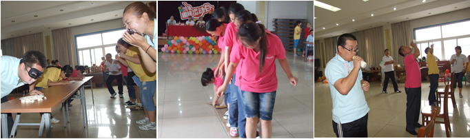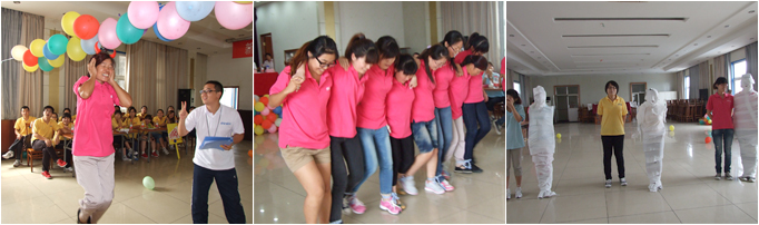 輕松扎氣球                             “8人九足”考驗了大家的團隊協作能力                      包裝木乃伊