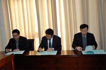 簽訂監管承諾書                                                          杜經理與其他兩位公司代表上臺領取獎牌