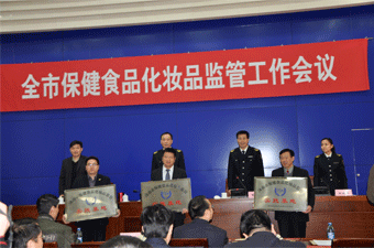 2013年3月13日,由濟南市食品藥品監督管理局主辦的“濟南市保健食品化妝品監管工作會議”在龍奧大廈隆重召開,來自濟南市及各縣(市)區監管系統一線的執法工作人員參加了此次會議。會議由濟南市食品藥品監督管理局保化處陳廣銀處長主持,濟南市食品藥品監督管理局衣光軍副局長、保化處杜曉偉科長、保化處朱銀和科長出席會議,我公司和山東天地健生物工程有限公司、山東福瑞達生物工程有限公司參加了此次會議,并上臺領取了“濟南市保健食品化妝品監管實踐基地”的標牌。