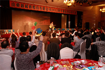 2013年4月17日,新稀寶股份在黃臺(tái)大酒店隆重舉行了一場(chǎng)獨(dú)具特色的的財(cái)年聯(lián)歡會(huì),醫(yī)藥事業(yè)部、電商事業(yè)部、商網(wǎng)部以及來(lái)自后勤各職能部門的部分代表共計(jì)300余人歡聚一堂,觀看節(jié)目,享用美食、現(xiàn)場(chǎng)氣氛熱烈和諧,宛如群星云集的時(shí)尚晚會(huì)。董事長(zhǎng)湯傳忠先生、常務(wù)副總經(jīng)理杜征國(guó)先生、副總經(jīng)理鄭朝霞女士以及公司其他中高層領(lǐng)導(dǎo)都參加了此次聯(lián)歡會(huì),與大家共同迎接新財(cái)年的到來(lái)。