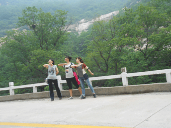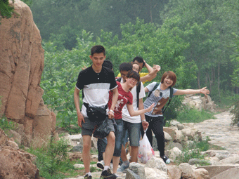 大家在導游的帶領下,相互鼓勵著、笑著、聊著,一邊欣賞著沿途的風景,一邊向南天門攀登。一路前行,一路歡笑,一路花香鳥語,一路溪流潺潺。登上山頂,極目遠眺,山中美景盡收眼底:谷內植被蔥茂、層巒疊翠、浮云流水,處處流光溢彩,充滿詩情畫意,大家紛紛拿起手中的相機,記錄下一個個美麗、精彩的瞬間。