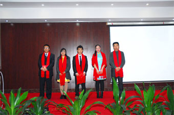 本次會議由李建東、梁鳳丹主持并做精彩的開場白。會議現場,女同事們的古典旗袍搭配男同事們的帥氣西裝,每人身披紅色圍巾,使得會場內充滿喜慶的氣氛,在集體誦讀公司三個理念的激昂氛圍中大會正式開始……