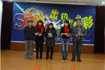 晚宴上,公司高層和與會員工共同舉杯,一起慶賀滿載收獲的2013年,一起歡迎充滿希望的2014年。同時也頒發了聯歡會的各個團體及個人獎項,“博學團隊獎”的桂冠由黃隊摘得;“精氣神兒團隊獎”則由紅隊獲得;“最佳設計團隊獎”和“游戲王團隊獎”由藍隊包攬。個人獎方面,“最上鏡模特獎”由綠隊的卜新春獲得,“最有紅毯范兒獎”由紅隊的張風爽獲得,“移動的百科全書稱號獎”則由綠隊的周海超獲得。所有獲獎人員在領取豐厚獎品、表達開心的同時,都不約而同地表達了對給予自己充分支持的、通力合作的團隊全體成員的感謝!