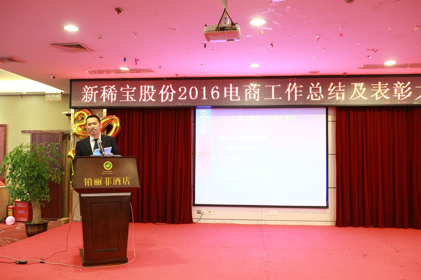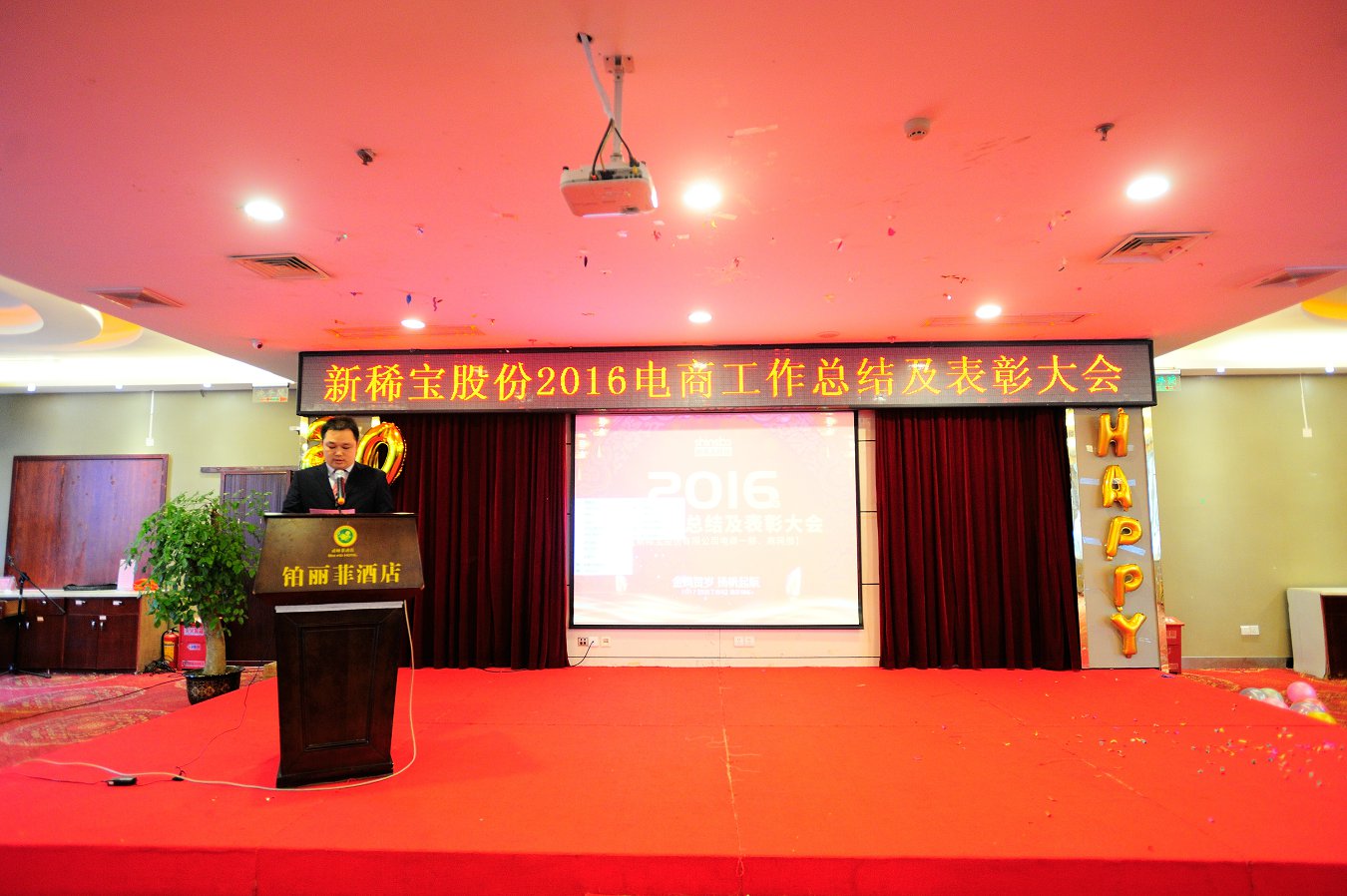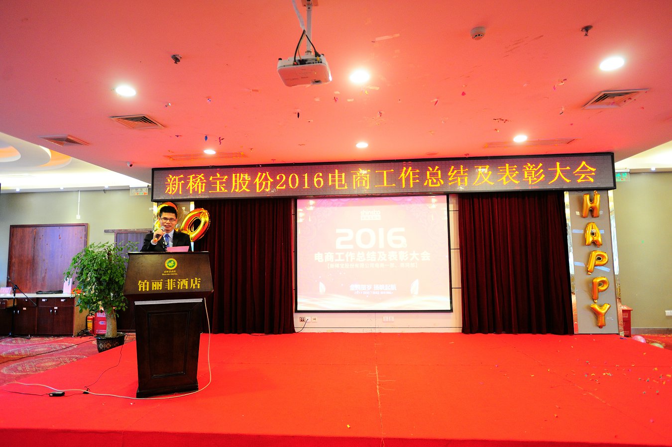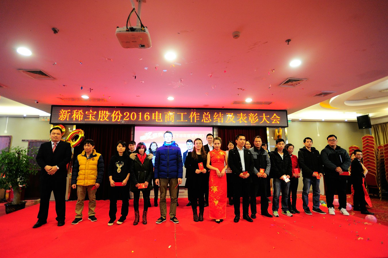 綠城南寧金雞賀歲,電商商網(wǎng)揚(yáng)帆起航。2017年1月13日,新稀寶股份2016年度電商及商網(wǎng)工作總結(jié)暨表彰大會(huì)在廣西南寧鉑麗菲酒店正式召開(kāi)。電商事業(yè)部一部、商網(wǎng)部全體精英共計(jì)80余人參加了此次盛會(huì),新稀寶股份有限公司副總經(jīng)理-鄭朝霞女士、高層經(jīng)理輪值主席-張秋峰先生、生產(chǎn)總監(jiān)-王猛先生、電商事業(yè)部副經(jīng)理-李建東先生、南寧分公司副經(jīng)理-陳文歡先生均出席了本次會(huì)議。