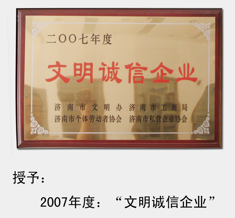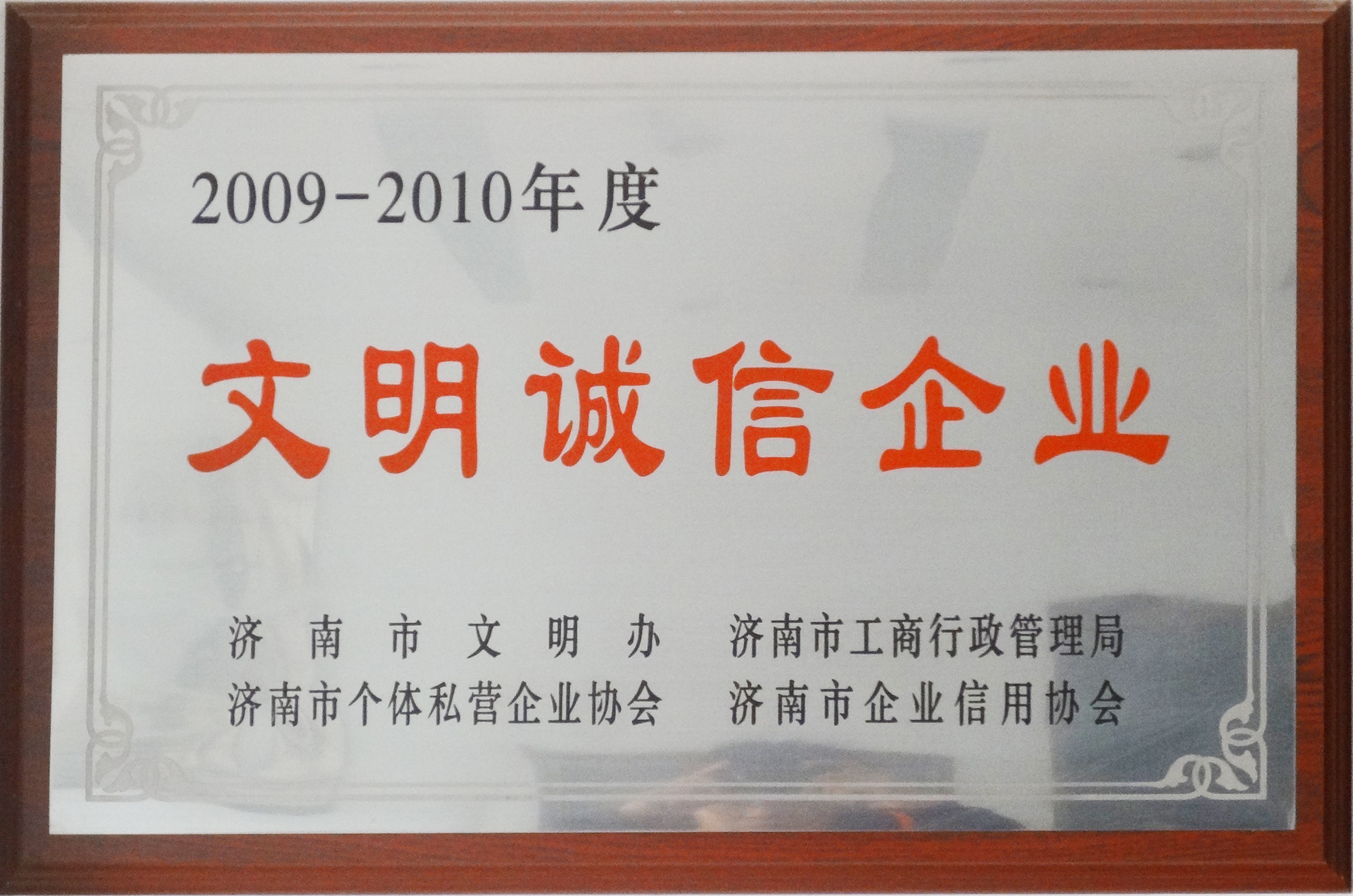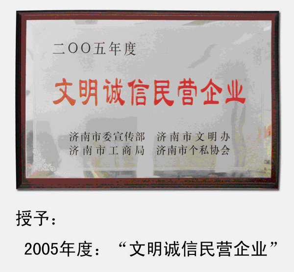 2005~2010年,被濟南市委宣傳部、濟南市文明辦、濟南市工商局、濟南市個私協會評為“文明誠信民營企業”