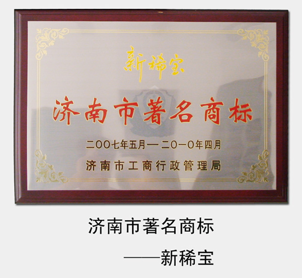 2007年-2013年,“新稀寶”被濟南市工商局評為“濟南市著名商標”