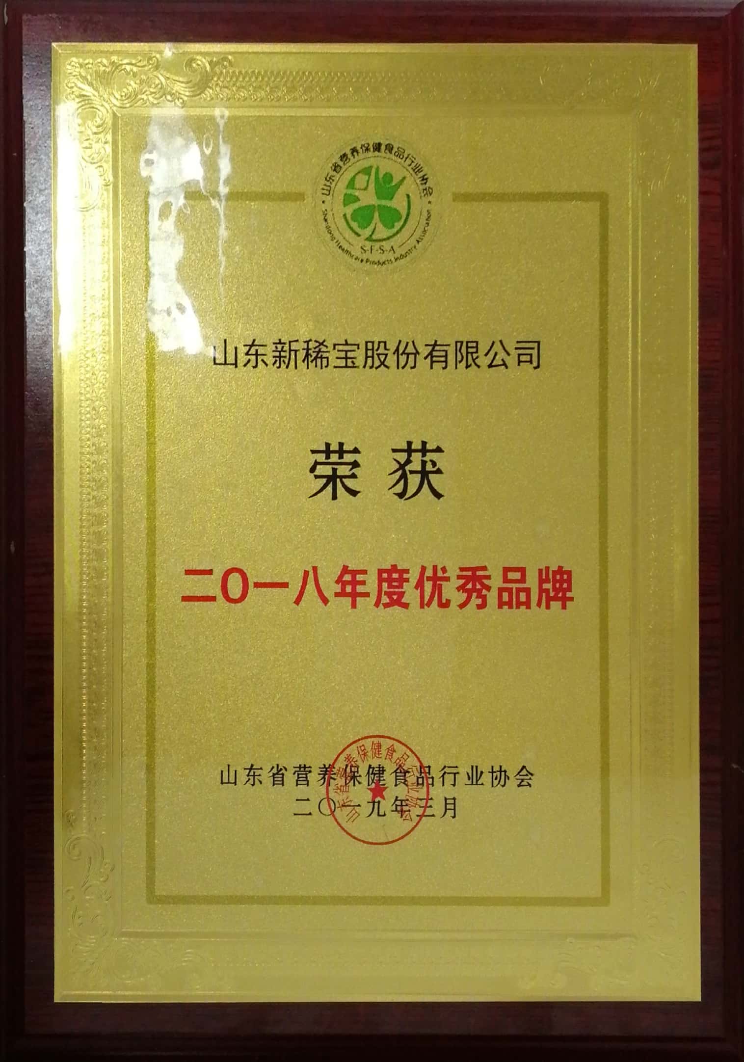 被山東省營養保健食品行業協會授予“二0一八年度優秀品牌”