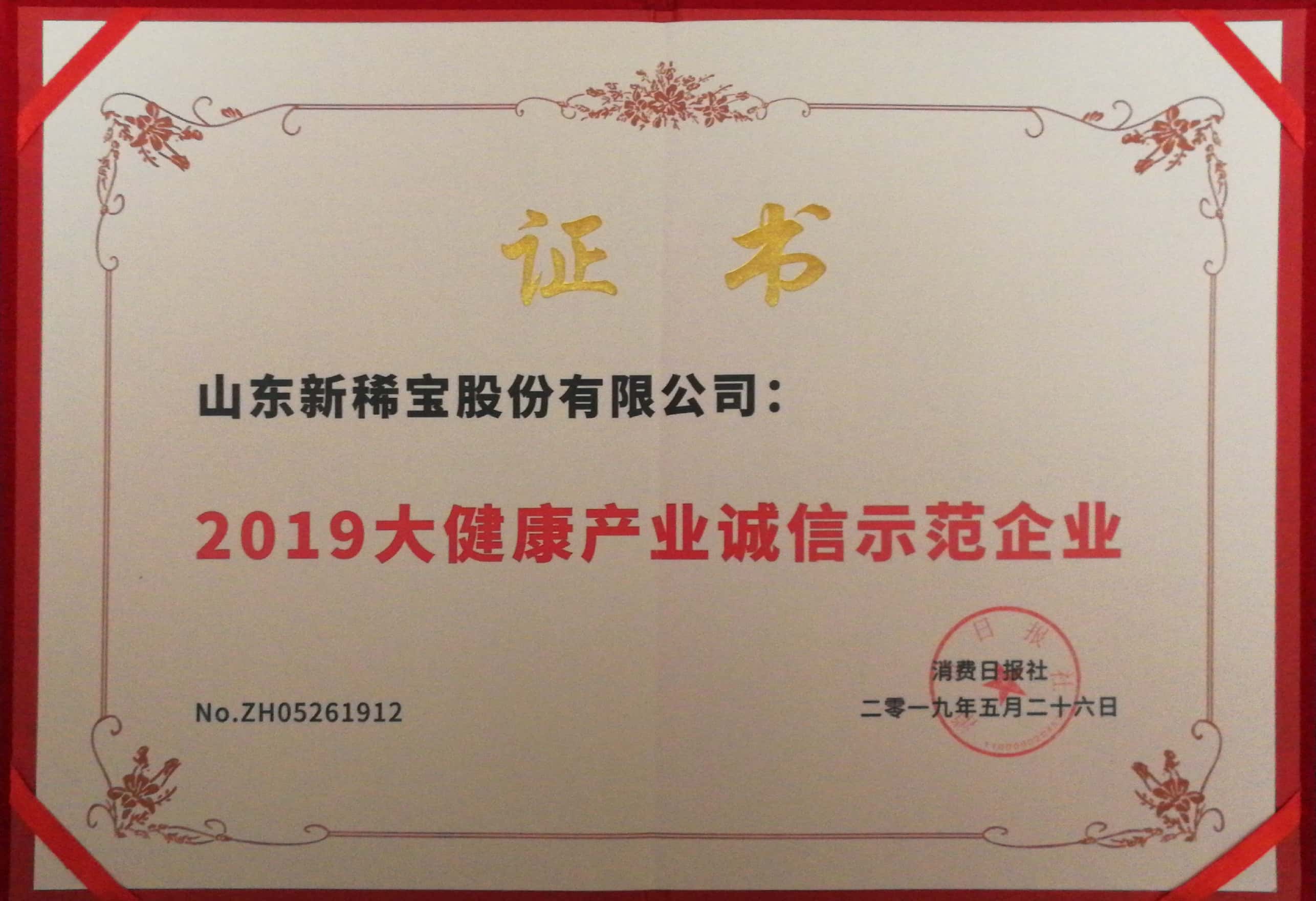 “新稀寶”被消費日報社評為“2019大健康產業十大公...