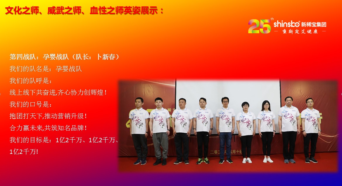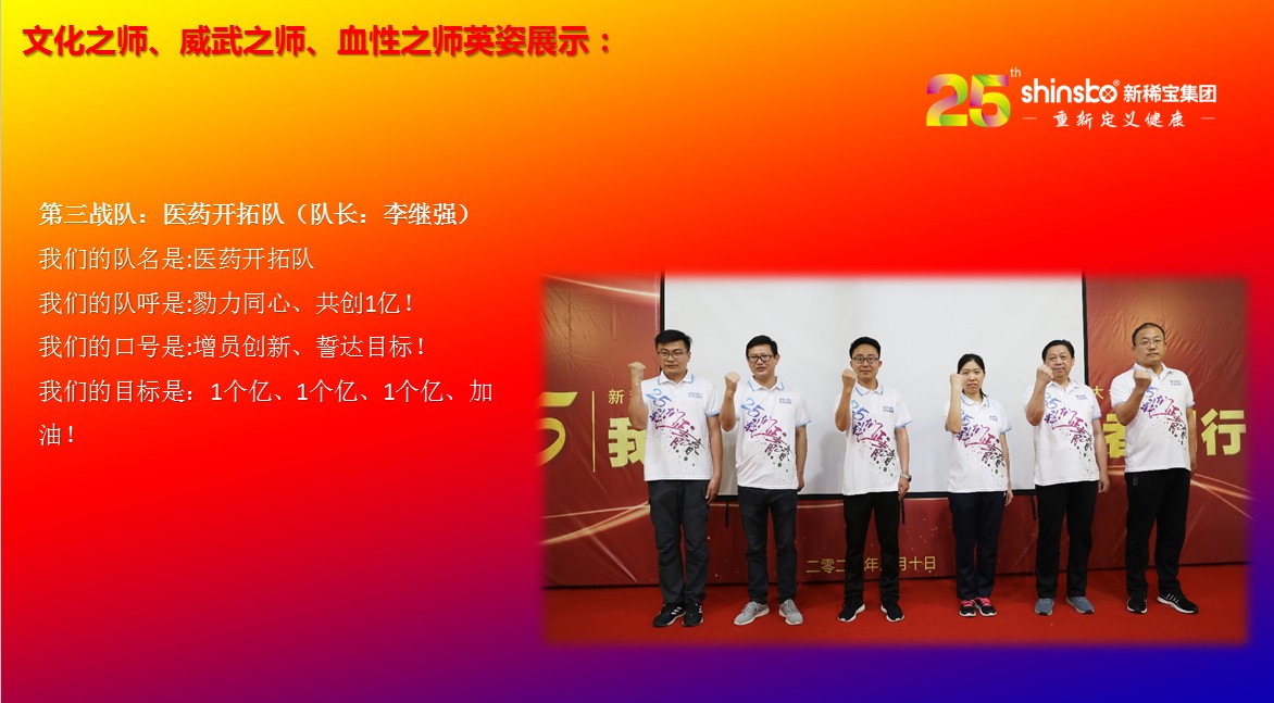 本次“文化之師、威武之師、血性之師”誓師大會是公司成立25周年及改革突破關鍵當口一次重要檢閱,是集團向公司全體新稀寶人發出一個強烈的信號:5個億目標一刻都不能耽擱,全體新稀寶人要以千均重擔人人挑的責任感、緊迫感、使命感,要以只爭朝夕,早抓落實、緊抓不放確保集團2020目標實現。