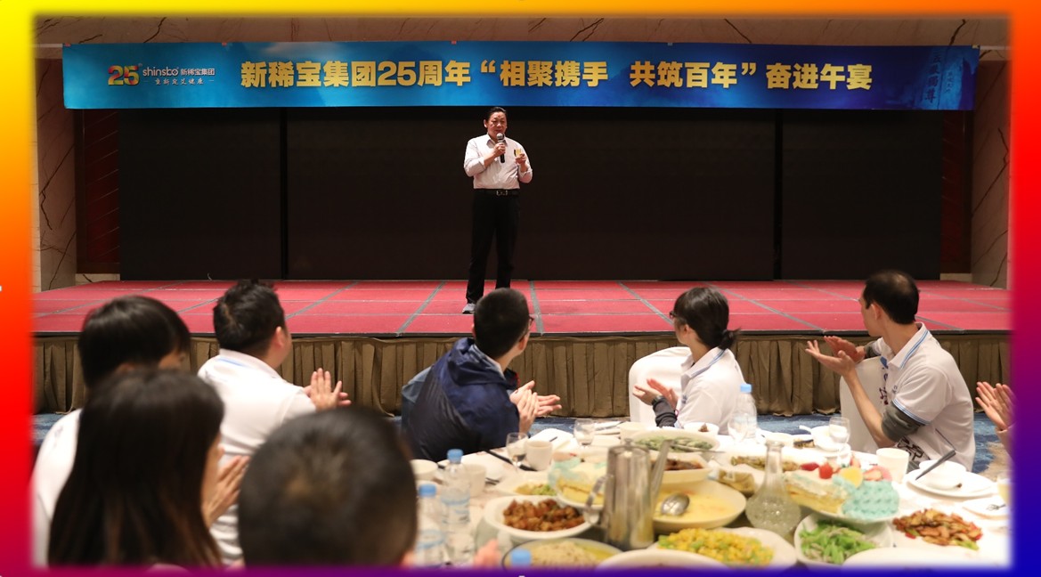 二十五年櫛風沐雨,二十五年春華秋實。集團踏著時代的鼓點,乘著改革的東風,一路走來,我們胸懷蒼茫大地,志達遼闊藍天,奮進的征途永無盡頭。集團董事長湯傳忠先生發表《偉大的時代 難得的機遇 共筑新稀寶的新未來》主旨演講,董事長從“偉大的時代”層面,為大家深層剖析了“大健康產業”的時代已經到來,是“人類健康共同體 重新認識大健康”難得機遇,我們必須緊跟時代“落后時代是最大的落后”。