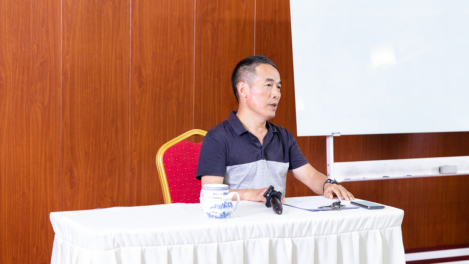 “突破困難的過程,就是開悟的過程。”緊接著,集團董事長王猛也圍繞《道德經》展開了一場《固本興新 時不我待》的主題演講。王猛說到:“現在的經濟形式不樂觀,我們只能順勢而為、轉變思維,充分發揮自己的主觀能動性,找出自己的應對方式,形成共振。共振的力量最大,只有共同轉變和變革,才能讓集團實現持續健康的發展。”